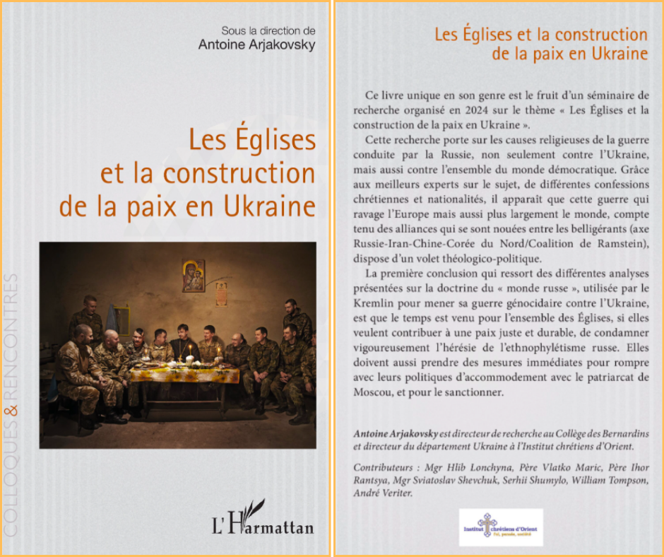 Ce livre unique en son genre est le fruit d’un séminaire de recherche organisé en 2024 sur le thème « Les Églises et la construction de la paix en Ukraine » sous la direction d'Antoine Arjakovski, directeur du département Ukraine de l'Institut chrétiens d'Orient.