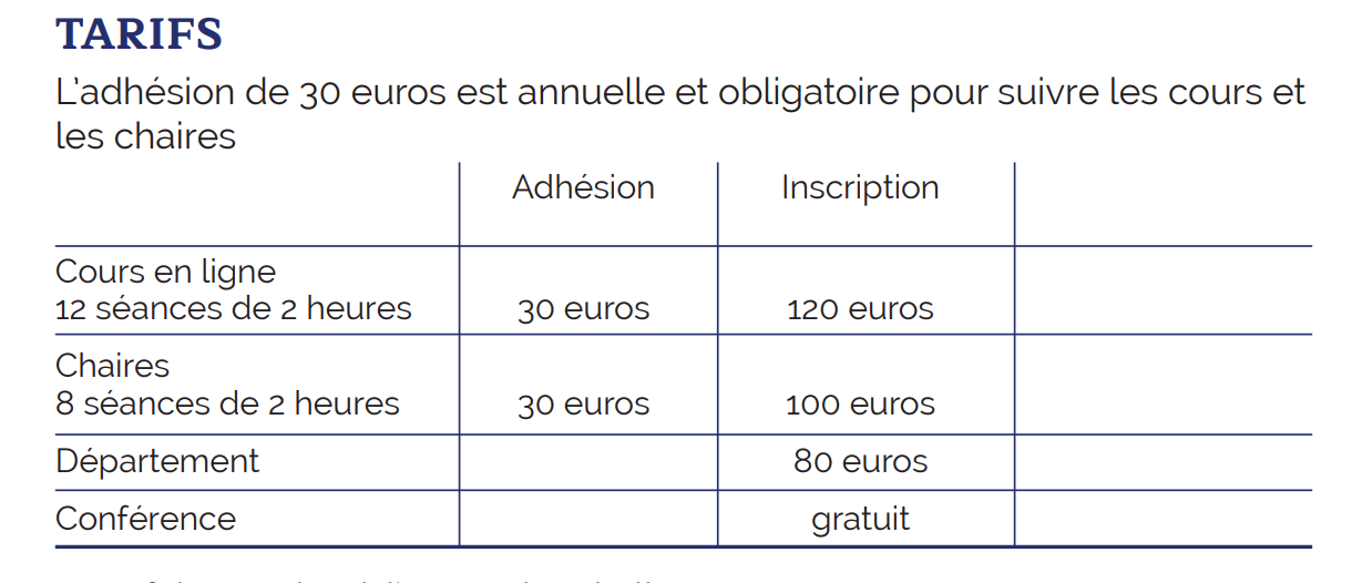 L’adhésion de 30 euros est annuelle et obligatoire pour suivre les cours en ligne ou les séminaires